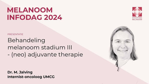 Hieronder opnames van de lezingen over huidmelanoom gehouden tijdens de landelijke Melanoom Infodag 2024. Deze dag, die jaarlijks door Stichting Melanoom wordt georganiseerd, is dé kans voor melanoompatiënten, naasten en andere geïnteresseerden om meer te weten te komen over de nieuwste behandelingen, om vragen te stellen aan specialisten en elkaar te ontmoeten.